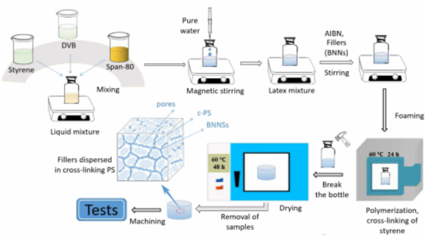 图1 多孔结构BNNSs/c-PS复合材料制备工艺过程