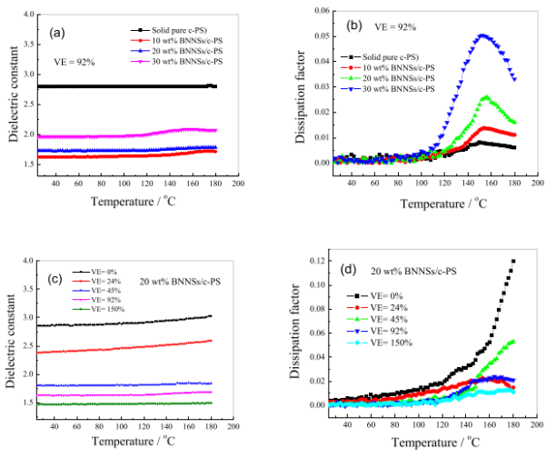 此外,该多孔结构复合材料呈现出明显低于本体聚合物的超低介电常数及损耗,在宽频内保持了极佳的稳定性,以及玻璃化转变温度下的极高的频率及温度稳定性。本研究设计和制作的该超轻聚合物导热复合材料以独特的低密度、超低介电常数及损耗、高比热导率优势在航空及航天电子器件及绝缘散热场合显示了重要的潜在应用价值。