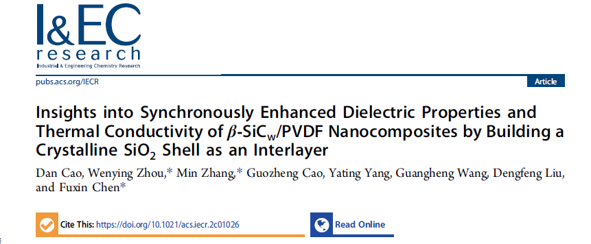 近日,威廉体育williamhill周文英教授团队-压电催化与新能源电工材料研究中心在国际化工领域公认的三大经典刊物之一《Industrial & Engineering Chemistry Research》上发表题为 “Insights into synchronously enhanced dielectric properties and thermal conductivity of β-SiCw/PVDF nanocomposites by building a crystalline SiO2 shell as an interlayer” 最新研究成果,实现了威廉体育williamhill在国际化工研究领域公认的顶级刊物上的学术论文的首次重要突破,标志着公司化工学科在基础化工材料领域的研究又上新台阶,有力推动了化工学科发展。IECR为美国化学会旗下工程技术领域著名期刊,旨在发表全球化学工程应用领域内最新的高质量原创性研究。