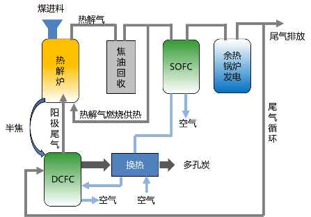陕北地区煤炭资源丰富,是国家级能源化工基地。神府煤为低变质的侏罗纪弱粘或不粘煤,具有煤质好、低灰、低硫、低磷、高挥发分的特点,是优质化工原料用煤。清洁、低碳、高效地利用好这些宝贵资源具有极为重要的现实意义和战略意义。热解技术是神府煤分质利用的重要途径,在榆林能源化工基地得到了广泛应用,但存在焦油收率低、品质差,半焦应用价值低等问题。本技术成果针对上述问题,开发成功了低阶煤热解-固体氧化物燃料电池系统多联产关键技术,通过该技术可同时高收率得到高品质焦油、煤气和多孔碳材料、以及电力,具有碳排放小、能量转化率高、产品附加值高等优点。