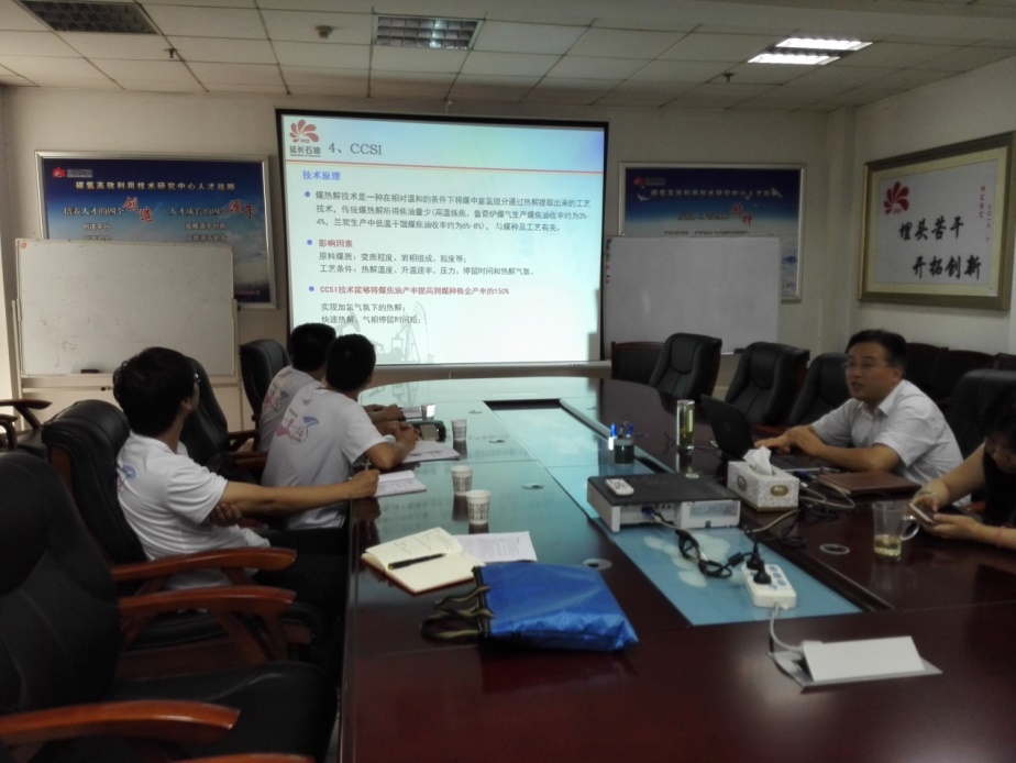 7月20日,陕西延长石油(集团)有限责任公司碳氢高效利用技术研究中心作为首家调研单位,研究中心的王宁波总工程师和中心综合管理部部长王永娟接待了调研成员,并对研究中心的基本情况进行了介绍。陕西延长石油(集团)有限责任公司碳氢高效利用技术研究中心投资10亿元人民币,与英国BP公司、美国KBR公司合作建设1套悬浮床加氢裂化技术工业试验装置和1套原煤提质和输运床气化一体化综合利用试验示范装置。这两套试验示范装置均为全球首创,将形成具有世界领先水平的先进技术。该中心还针对煤炭清洁转化技术进行了中试研究,形成了YCCO(煤、油共炼)、KSY(超大型流化床气化技术)、CCSI(煤提取煤焦油及半焦化气化一体化技术)三大核心技术,这些技术的研发和应用将为煤化工的发展提供巨大潜力。
