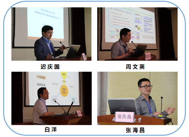 究员基于分子内/间的氢键作用,介绍了给体-受体型有机分子间氢键的原位生成及其对场效应晶体管性能的影响;大连理工大学的段玉平教授主要介绍了掺杂态二氧化锰的介电损耗性能方面的研究;北京航空航天大学的邓元教授与大家分享了基于复合材料的发电及传感技术;清华大学的党智敏教授基于电致形变与无磁电机方面的内容为大家介绍了先进介电弹性体技术;威廉体育官方网站的周文英与杜慧玲教授分别介绍了基于多孔结构的轻质导热聚合物复合材料研究和气体传感器用无铅压电复合材料结构调控与性能研究。