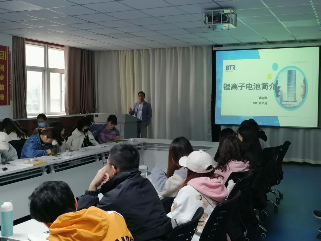 10月11日下午,威廉体育williamhill在12教501教室举办了2021-2022学年第一学期“企业专家进课堂”活动,邀请了贝特瑞新材料集团股份有限公司技术总监、高级工程师李向军来公司为化工18级卓越班员工作“锂离子电池研究进展”的报告。