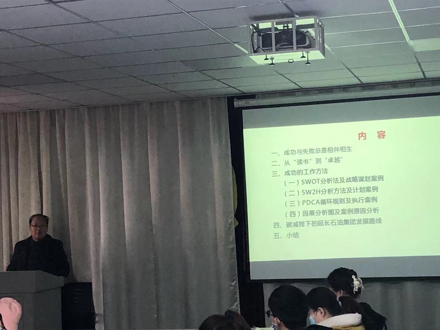 报告中,李经理从“成功与失败总是相伴相生”讲起,我们每一个人都是从成功诞生,在经历失败中汲取经验教训,走向新的成功,希望同学们树立信心。然后从文字构成的角度,解读了“读书”与“卓越”的外形与内涵。而我们化学工程与工艺专业同学,也应追求卓越,积极响应国家由工程教育大国迈向工程教育强国的大政方针,在行业企业参与高校联合共同培养下,早日成长为创新能力强、适应经济社会发展需要的高质量工程技术人才。同学们要担当起这份使命,努力学习不负期望。那么如何在学习与工作中获得更大的成功?李经理总结自身几十年来的生活工作感悟、结合管理经验、旁征博引分析案例,为大家倾囊传授四套成功的工作方法。最后,李经理为大家介绍了碳减排下的延长集团发展路线,供即将走向工作岗位的同学们参考。