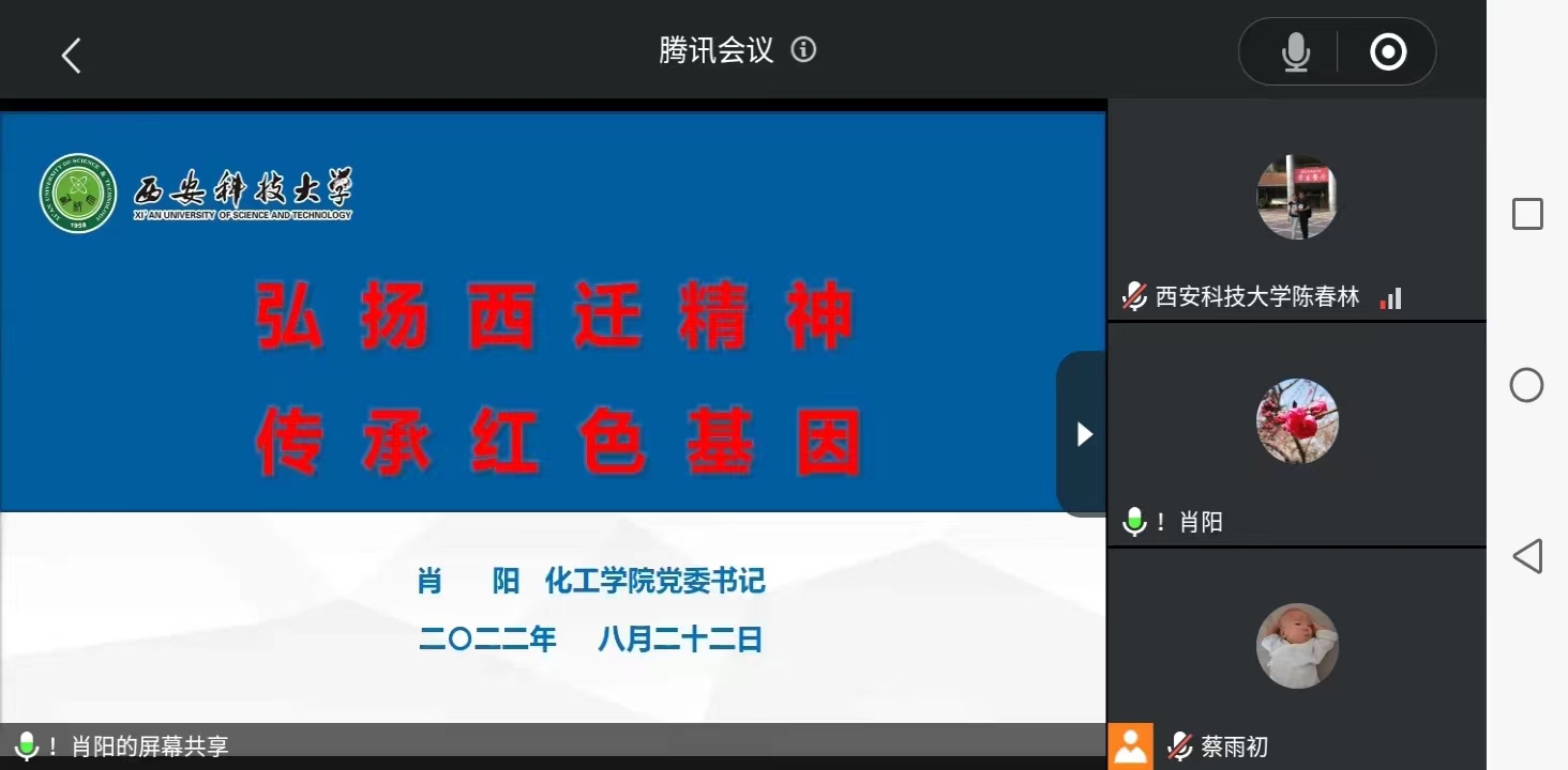 为丰富充实广大参训员工的军训生活,使同学们度过一个有意义、有知识、有温度难忘的军训,深入学习贯彻习近平总书记在省部级领导干部专题研讨班上的重要讲话精神和习近平总书记来陕考察重要讲话精神,使同学们更深刻认识“西迁精神”的重大意义,了解西迁精神的实质内涵和价值追求,让广大青年充分从“西迁精神”中汲取知识力量,提高思想认识,威廉体育williamhill于8月22日下午利用腾讯会议在线上开展军训特殊党课,化工“导”论系列讲座。