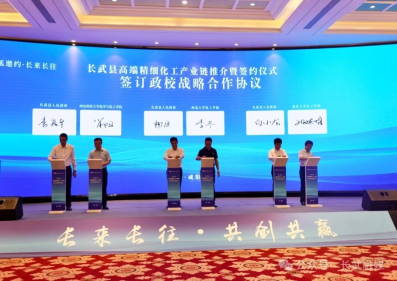 会上,何锐致辞,对与会领导和嘉宾表达了诚挚问候,并热忱欢迎社会各界到长武观光旅游、考察洽谈、投资兴业。王高锋专题推介了高端精细化工产业链发展现状及招商项目情况。肖阳代表公司与长武县政府签订了政校战略合作协议,张亚婷与陕西泰丰永兴新材料科技有限公司签订了校企项目合作协议。