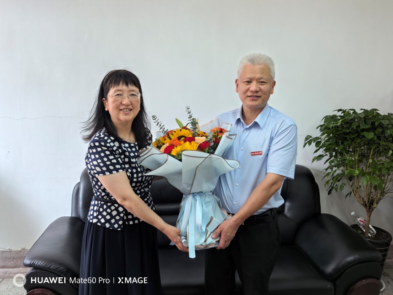 邓军感谢刘向荣教授为公司赢得的荣誉,详细询问了她在教学、科研、生活等方面的情况,听取了她在教书育人方面的心得体会和对公司建设发展的意见和建议。