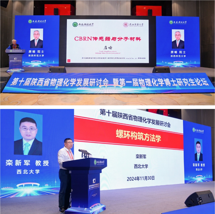房喻院士和栾新军教授分别以《CBRN传感器与分子材料》《螺环的构筑新方法研究》为题作了精彩的大会特邀报告。在随后的大会报告中,25名学者围绕物理化学学科与能源、材料、生命和环境等相关学科领域的交叉融合进行深入探讨,为拓展学术视野,激发创新思维,提升物理化学领域原始创新能力和人才培养质量提供了宝贵的经验和建议。