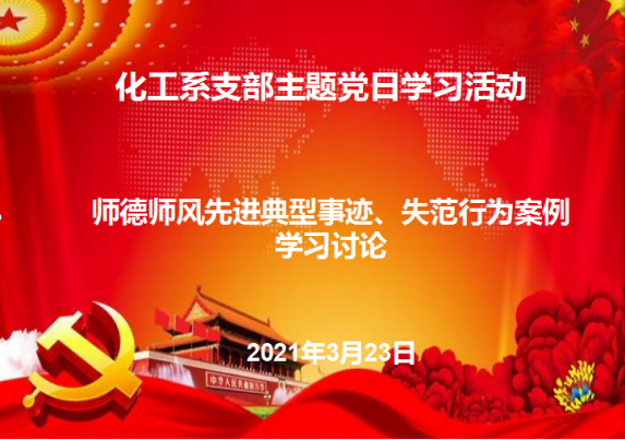 为深入贯彻教育部《新时代高校教师职业行为十项准则》及公司、公司对教师的师德要求,切实抓好教师思想政治教育工作,全面提升支部党员教工师德师风水平,激励支部党员教工守教育报国初心、担筑梦育人的神圣使命,切实增强贯彻执行党的路线方针政策的自觉性和坚定性,化工系支部于3月23日召开支部会议,集中学习师德师风先进典型事迹、失范行为案例,具体内容包括: