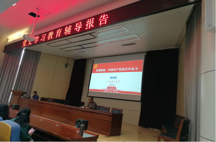 在党史学习教育动员大会中,习近平总书记在2021年2月20日发表了重要讲话,明确指出党史学习所具有的重要意义。总书记强调,在全党开展党史学习教育,是党中央立足党的百年历史新起点、统筹中华民族伟大复兴战略全局和世界百年未有之大变局、为动员全党全国满怀信心投身全面建设社会主义现代化国家而作出的重大决策。全党同志要做到学史明理、学史增信、学史崇德、学史力行,学党史、悟思想、办实事、开新局,以昂扬姿态奋斗开启全面建设社会主义现代化国家新征程。张铭钟教授从中国共产党建设新中国的各个阶段划分时间区,通过对各个时期国家领导人对中国社会主义建设事业的运筹帷幄、阶段成果和思想贡献分别进行阐述,系统地介绍了中国共产党成立以来的一系列重大事件和对党及社会建设的重大影响,为参会全体党员上了一堂精彩、生动的党史课。
