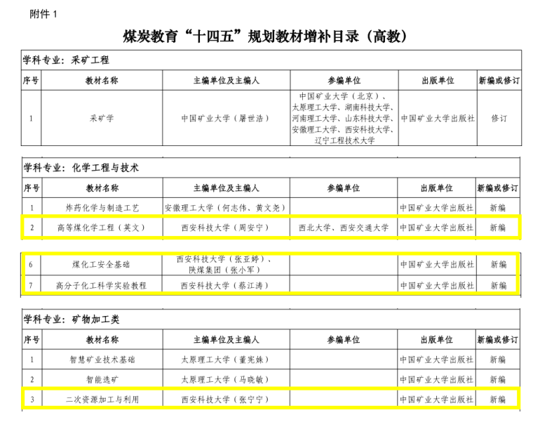 近日,中国煤炭教育协会发布了《关于公布煤炭高等教育、职业教育“十四五”规划教材增补目录的通知》(中煤教协〔2023〕36号)。经初筛、初审、二次审议及终审等程序,共有164种教材入选煤炭高等教育“十四五”规划教材增补目录。由公司教师主编的4部教材成功入选。